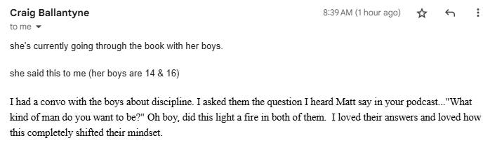 For context, she’s referencing a podcast that Craig and my dad (Matt Smith) did together, which you can watch by clicking HERE.